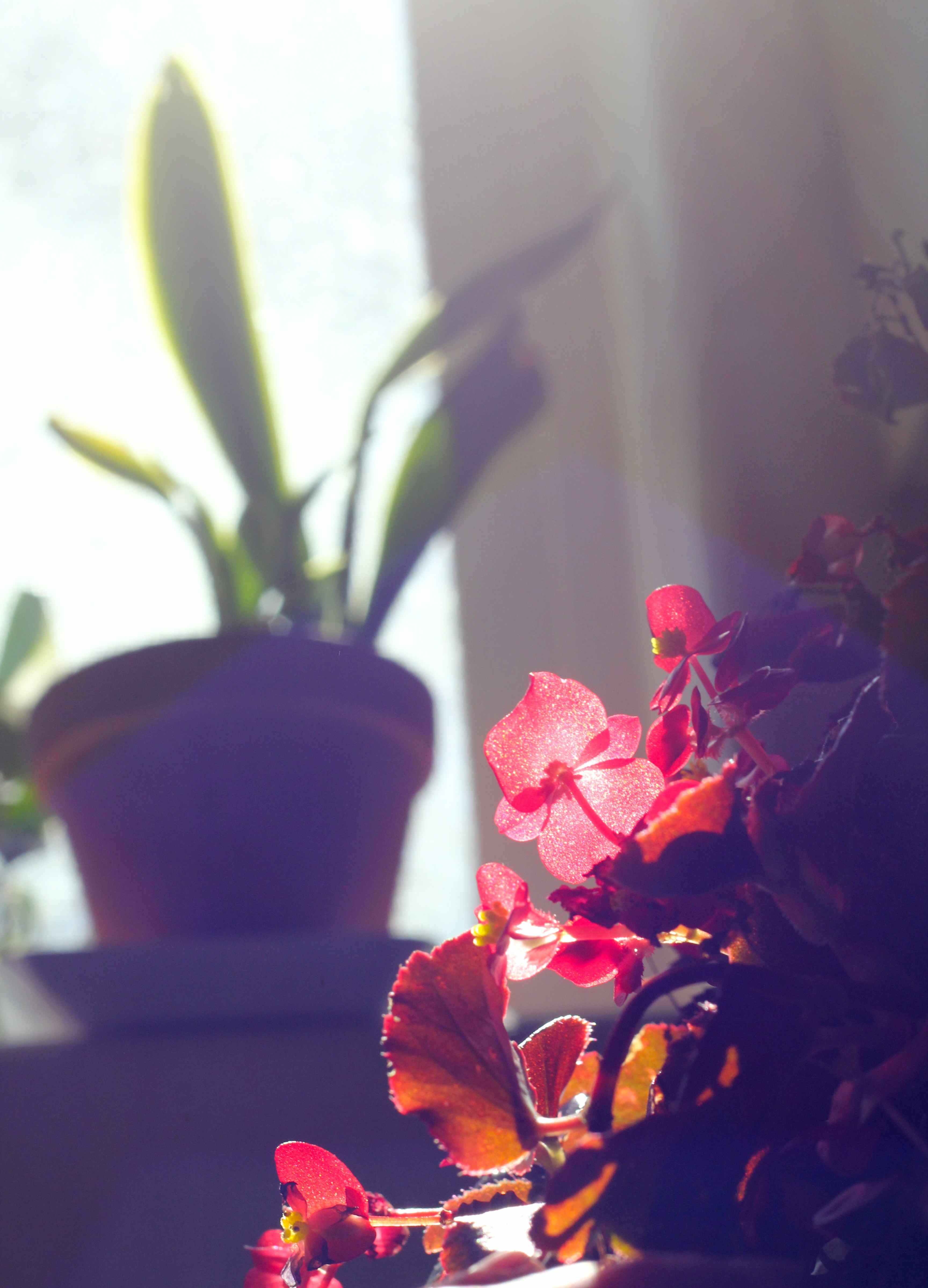 scarlet begonias in the sun